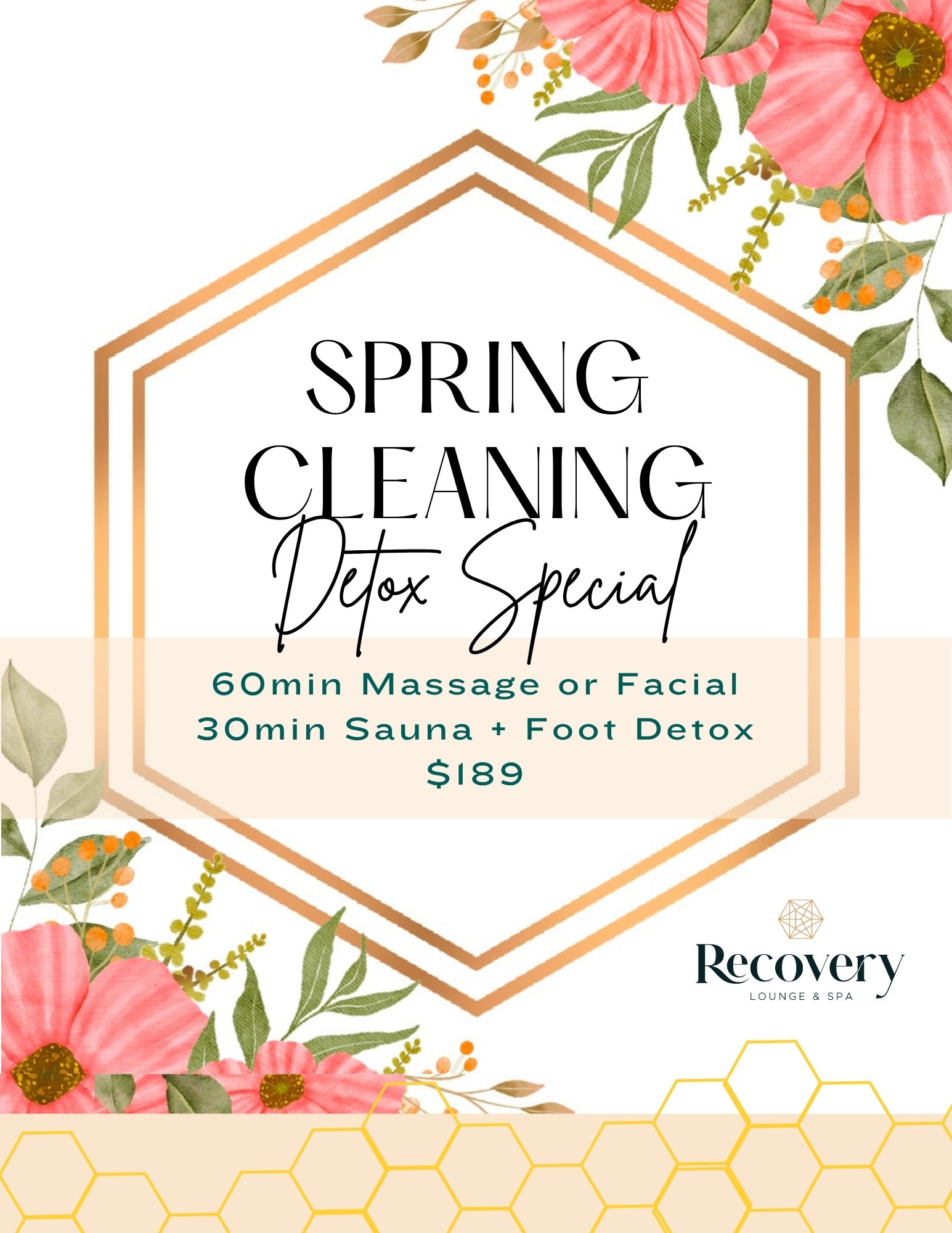 Spring Detox Special with Massage includes: 60-minute massage of your choice, 30-minute infrared sauna, and 30-minute Ionic Foot Detox.*